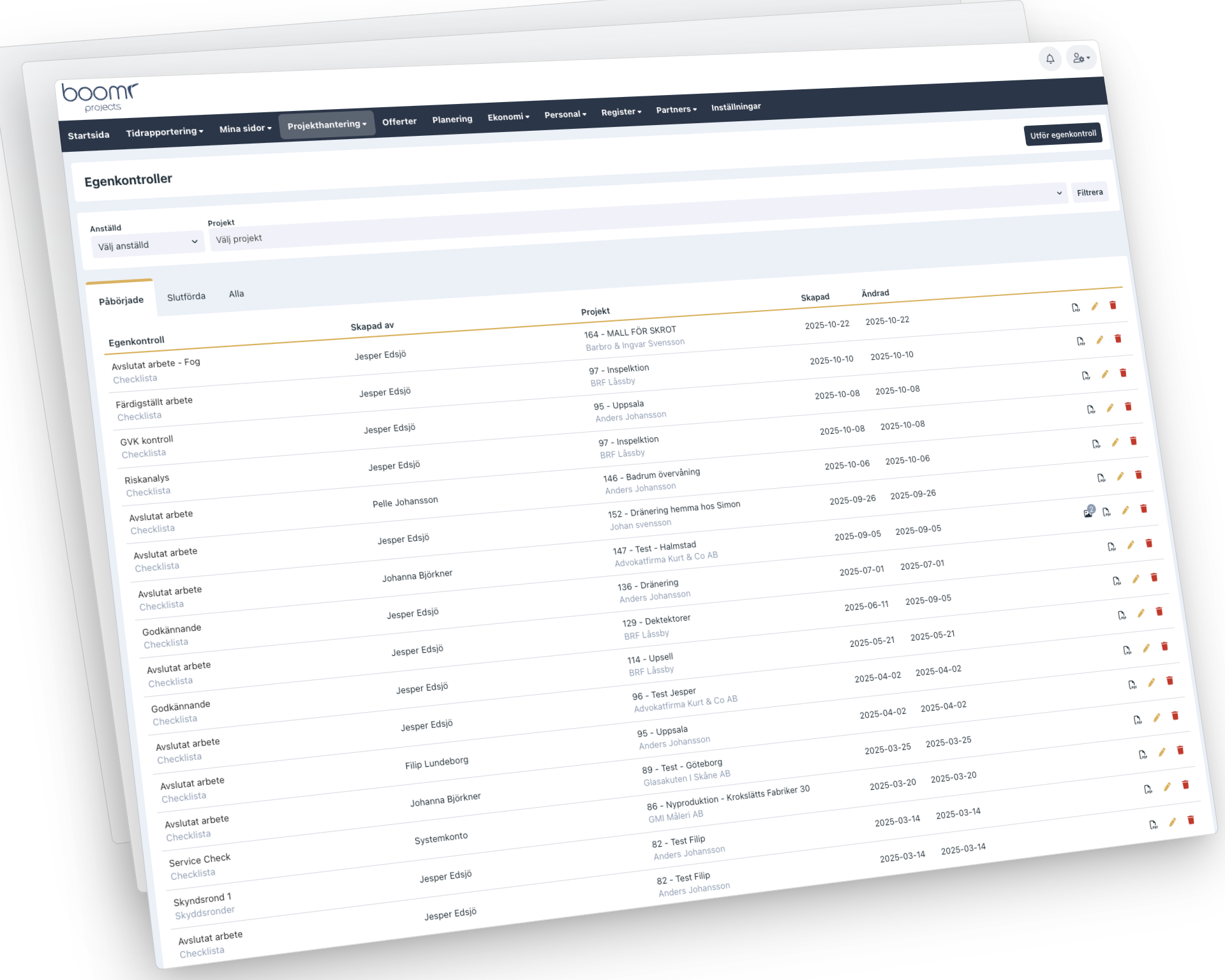 Med Boomr Projects slipper du manuella tidlappar och röriga excelark. Registrera tid, material och arbetsorder digitalt – direkt i mobilen eller datorn. Perfekt för bygg, service och entreprenad där varje minut räknas