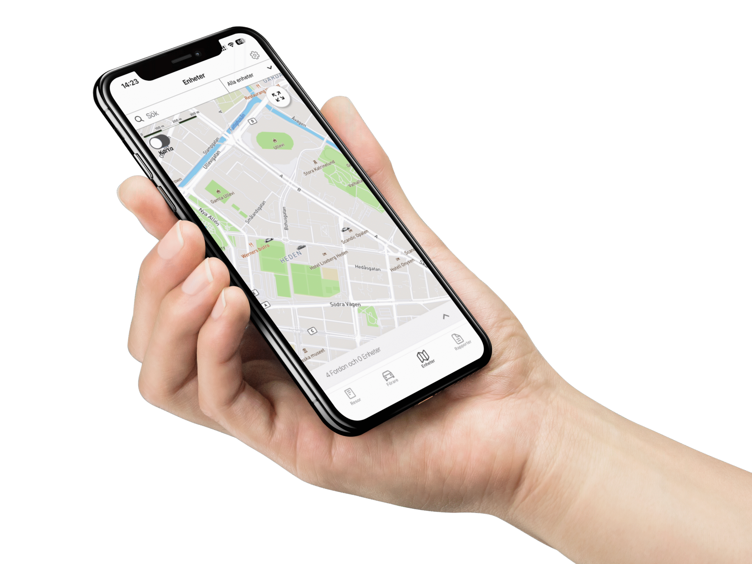 Spara adresser som zoner och låt systemet automatiskt registrera resesyften när fordon anländer. Du kan även få notiser när personal når specifika platser – perfekt för extra trygghet i fältarbete.